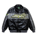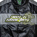 The 40s & Shorties x On The Radar Varsity Jacket brings a bold motorsport-inspired energy to a classic silhouette. Crafted from premium faux leather, this statement piece features striking color blocking, oversized co-branded graphics, and embroidered detailing that captures the spirit of the collaboration. A quilted poly fill lining adds warmth and structure, making it a standout outerwear layer built for colder days while keeping a clean streetwear edge.